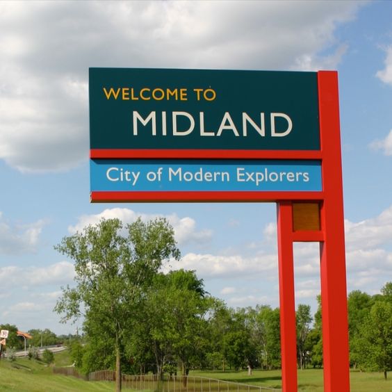 伸出來的紅色路邊標識牌