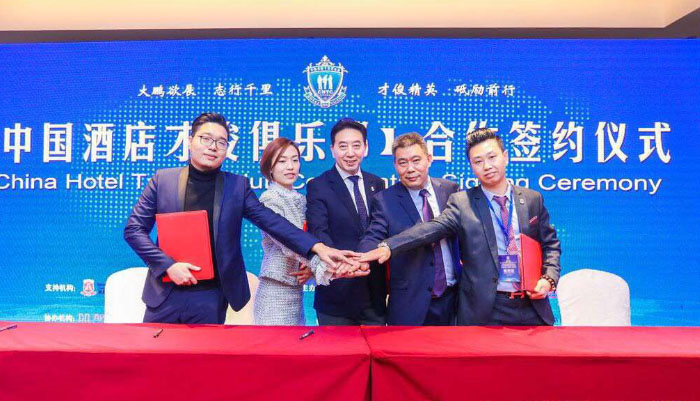 中國酒店才俊俱樂部微電影播放中拉開序幕。作為本次大會的主持人,中國酒店才俊俱樂部總部執行秘書長王旭先生主持剪彩儀式,并為在座來賓介紹“中國酒店才俊俱樂部專家顧問團”嘉賓。人和時代酒店俱樂部VI設計作為中國酒店才俊俱樂部創辦人之一,國際酒店領袖機構總裁安強先生為專家顧問團頒發了特聘證書及紀念品。